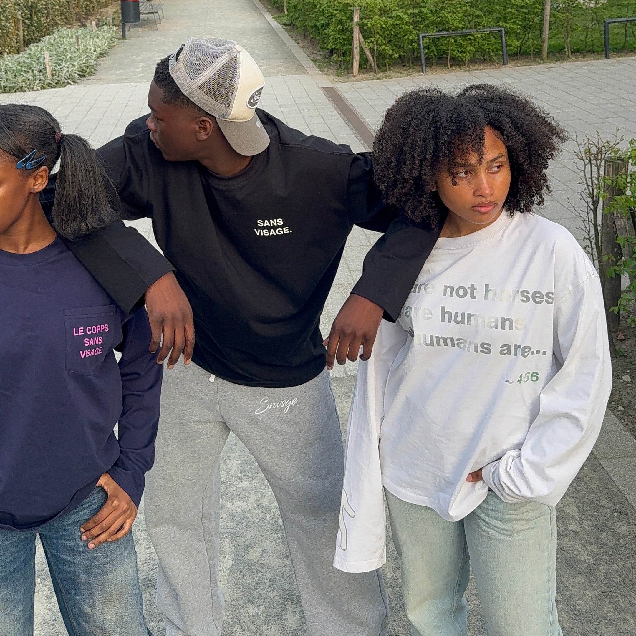 SANS VISAGE pieces are cut for a modern architectural fit. We recommend your standard size for the intended silhouette, or sizing up for a relaxed drape.